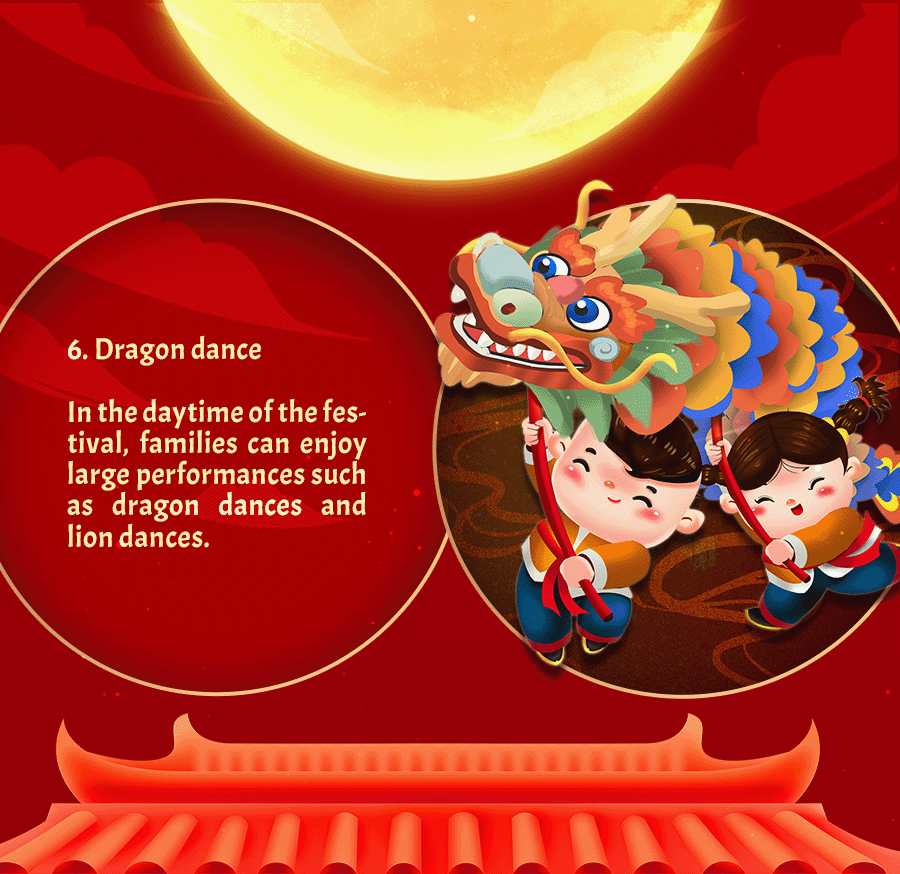 In the daytime of the festival, families can enjoy large performances such as dragon dances and lion dances. For over 2,000 years, the dragon has stood as a symbol of deity in ancient China, therefore, people perform the dragon dance to pray to the gods for rain. Nowadays, the dragon dance is only performed for fun.