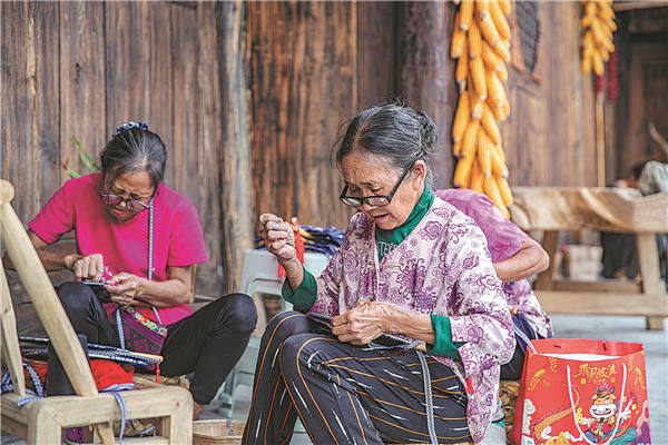Senior citizens practice Miao embroidery at a workshop in Hejiayan village, Youyang Tujia and Miao autonomous county, Chongqing, in October. [Photo/Xinhua]