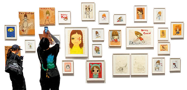 The curator of the exhibition, Mika Yoshitake, who did not attend the opening in Shanghai because of the pandemic, says Nara's works reflect his raw encounters with his inner self, taking inspiration from a wide range of resources-memories of his childhood, music, literature, studying and living in Germany from 1988 to 2000, exploring his roots in Asia and the Russian island of Sakhalin, and modern art from Europe and Japan.