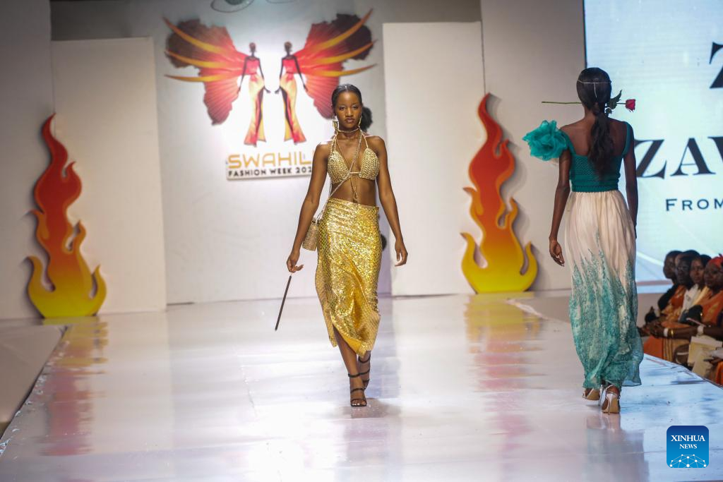 Models present creations during the 17th Swahili Fashion Week in Dar es Salaam, Tanzania, Dec. 6, 2024. Swahili Fashion Week, the annual fashion event in Africa, kicked off in Tanzania's port city of Dar es Salaam on Friday night. (Xinhua/Emmanuel Herman)