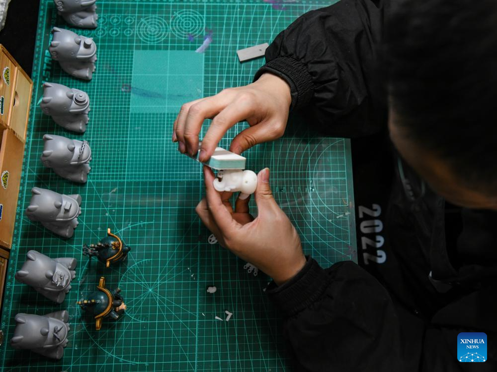 Zeng Zhou works on a model at his studio in Chengdu, southwest China's Sichuan Province, March 1, 2025. [Photo/Xinhua]