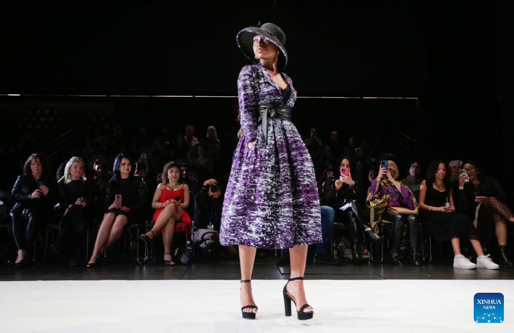 A model presents a creation by Kafui Design at African Fashion Week in Vancouver, British Columbia, Canada, March 22, 2025. (Photo by Liang Sen/Xinhua)