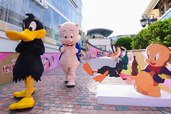 Two performers dressed as Porky Pig and Daffy Duck at the Beijing event. [Photo courtesy of China Film Group]