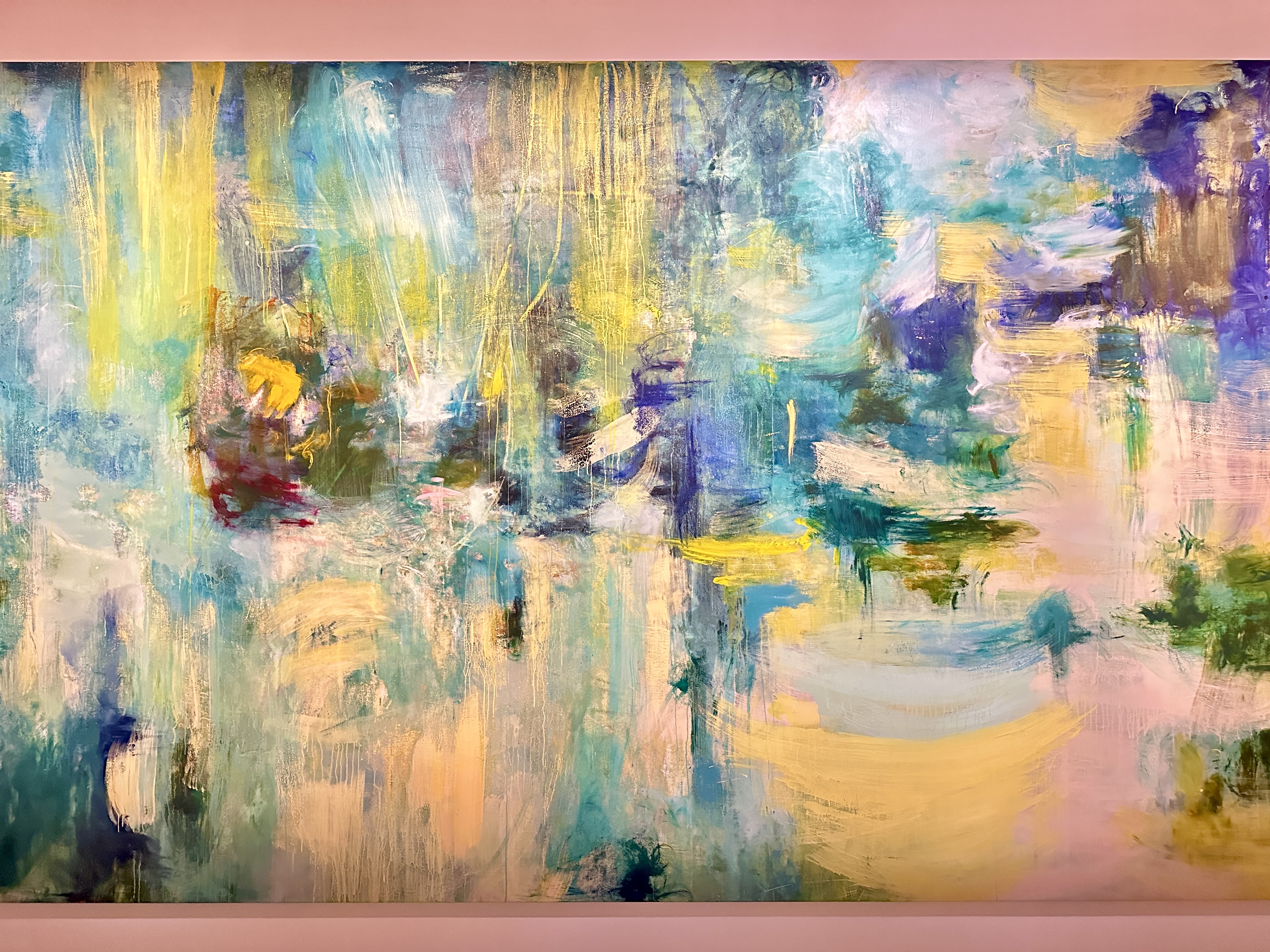 "Eyes on Arcadia" (2022-23) by Megan Rooney on display at the "Painting From Nature" exhibition at Espace Louis Vuitton in Beijing, June 6, 2025. The artist uses an expansive canvas of acrylic, oil and pastel to describe imagining a dark forest glowing in winter's light. Swirls and shadows give way to color and movement, blurring figuration and dream. [Photo by Liu Ziying/China.org.cn]