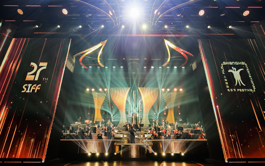 An orchestral performance is staged during the 27th Shanghai International Film Festival opening ceremony in Shanghai, June 14, 2025. [Photo courtesy of SIFF Organizing Committee]