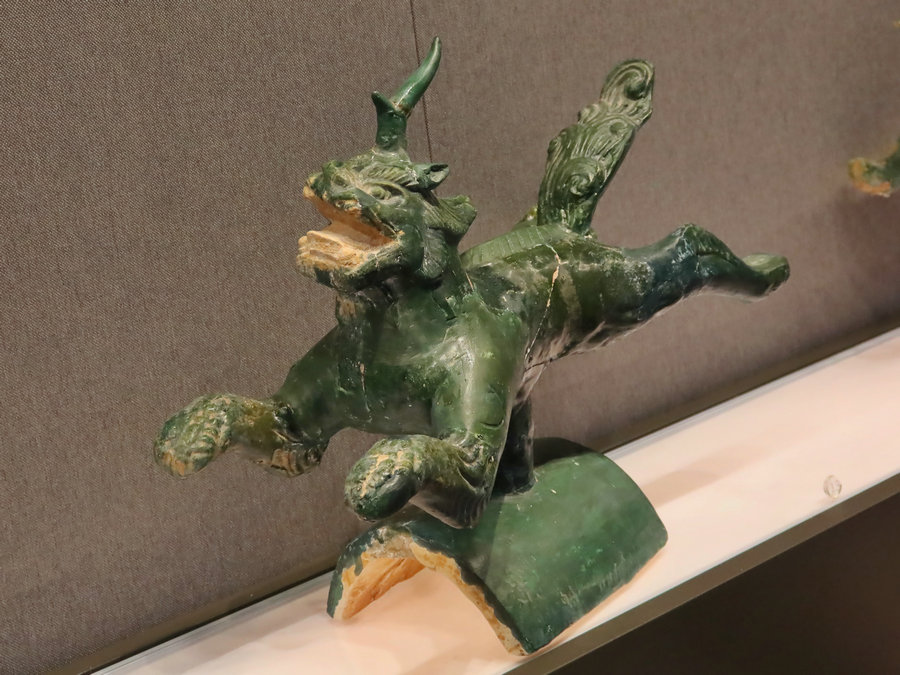 A green-glazed sea lion decoration unearthed from Mausoleum No 3. [Photo by Jiang Dong/China Daily]
