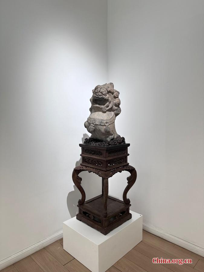 A weathered fragment of a stone lion on display at Hiart Space in Beijing, July 23, 2025. Though partially damaged, the remnant hints at once-vital guardianship and enduring symbolic authority. [Photo by Liu Ziying/China.org.cn]