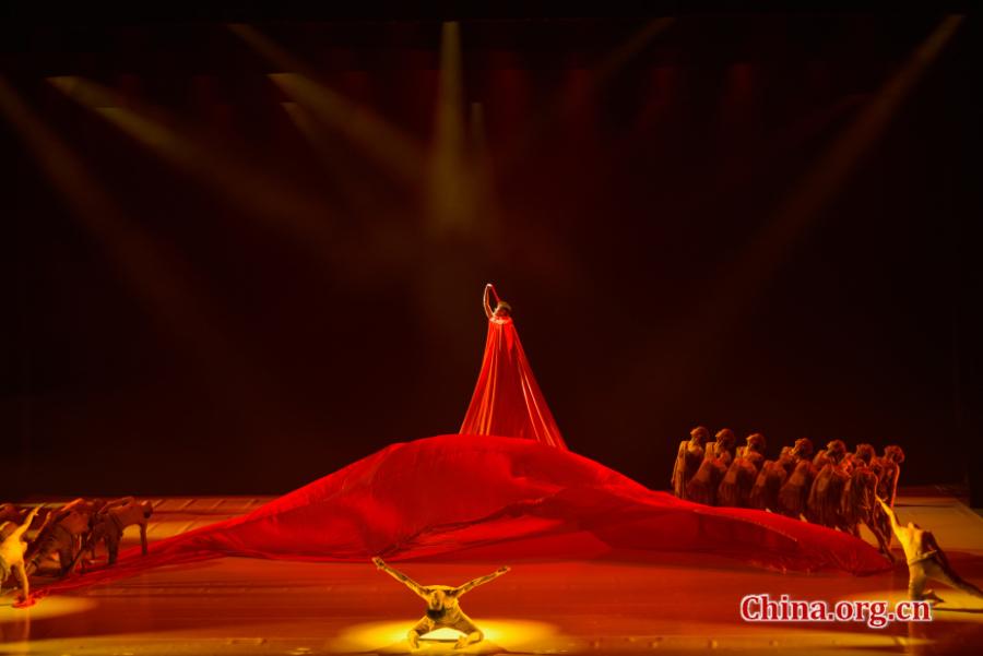 "The Yellow River" unfolds the spiritual scroll of the Chinese nation in three acts: The first act reproduces the dawn of civilization with primitive and unrestrained dance moves; the second act focuses on the suffering and struggles during the war against Japanese aggression; and the third act outlines the spirit of forging-ahead in the new era with red silk ribbon dancing.