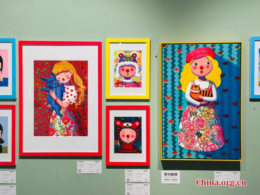 This photo, taken on Sept. 2, 2025, shows a few more extra individual works presented as high-quality spray prints, extending the artist's painting vocabulary into an accessible and durable display format. [Photo by Liu Ziying/China.org.cn]