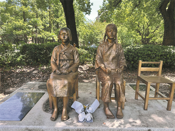 The "Comfort Women" Statues for Peace, co-created by artists from China and the Republic of Korea, was erected at Shanghai Normal University.[Photo provided by Wang Xin/China Daily]