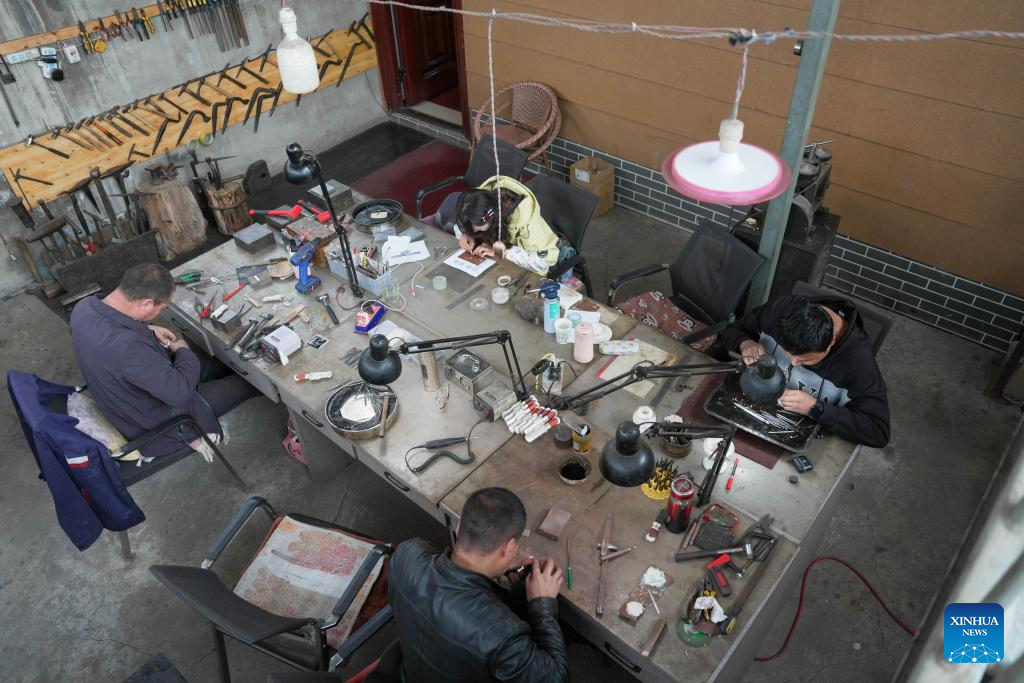 Craftsmen work at a workshop in Yangpo Village of Huangzhong District, Xining, northwest China's Qinghai Province, Sept. 28, 2025. [Photo/Xinhua]
