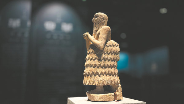 Another highlight is a statue of a worshipper, dressed in typical Sumerian attire and striking a pose as if in prayer.