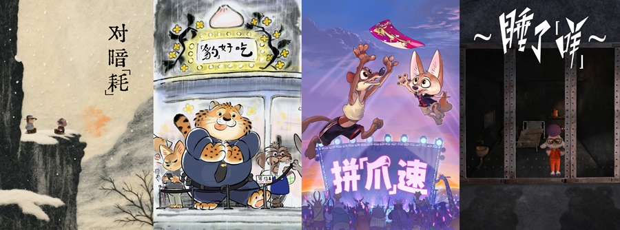 Posters for four "Zootopia" shorts. [Image courtesy of Disney Studios China & Shanghai Animation Film Studio]