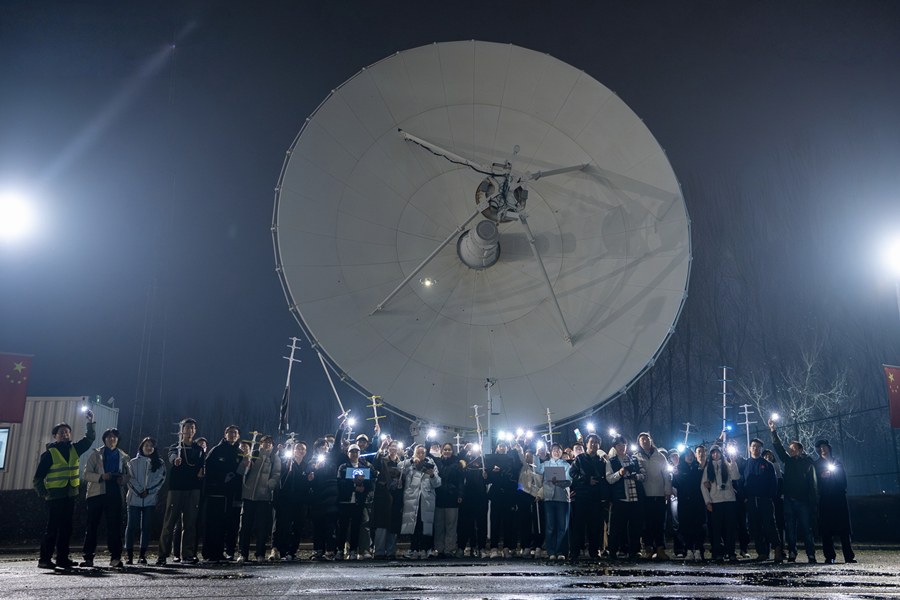 Participants pose for a photo during a signal reception event at Harbin Institute of Technology in Harbin, Heilongjiang province, Nov. 1, 2025. [Photo courtesy of Three-Body Universe]