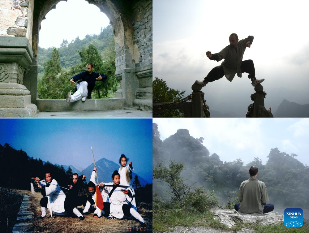 This undated combo photo shows four scenes of Ismet Himmet practicing Chinese martial arts in China. [Photo/Xinhua]