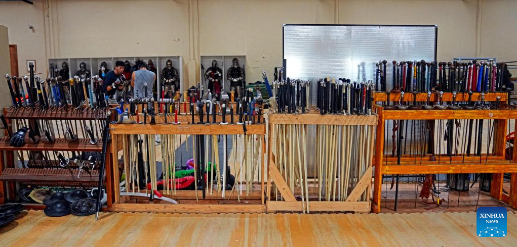 This photo shows German martial arts equipment and teaching equipment at the Shanghai Historical Martial Arts (SHMA) club in Shanghai, east China, Nov. 22, 2025. [Photo/Xinhua]