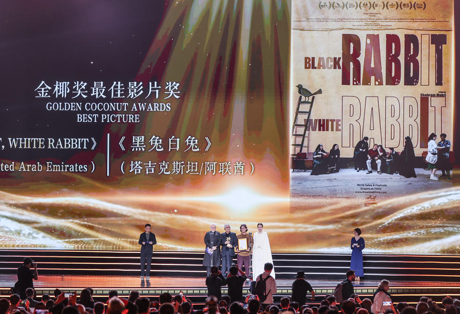 Iranian filmmaker Shahram Mokri's mystery drama "Black Rabbit, White Rabbit" won best picture at the Golden Coconut Awards ceremony. This concluded the 7th Hainan Island International Film Festival (HIIFF) in Sanya, Hainan province on Dec. 9.