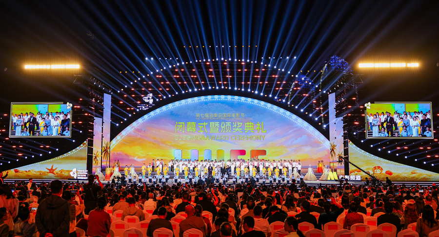 The 7th Hainan Island International Film Festival closing ceremony and the Golden Coconut Awards ceremony is held in Sanya, Hainan province on Dec. 9, 2025. [Photo courtesy of HIIFF Organizing Committee]