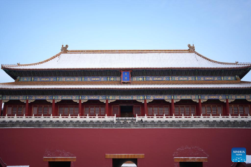 This photo taken on Dec. 13, 2025 shows a view of Wumen Gate of the Palace Museum after snowfall in Beijing, China. (Xinhua/Ma Xiaodong)