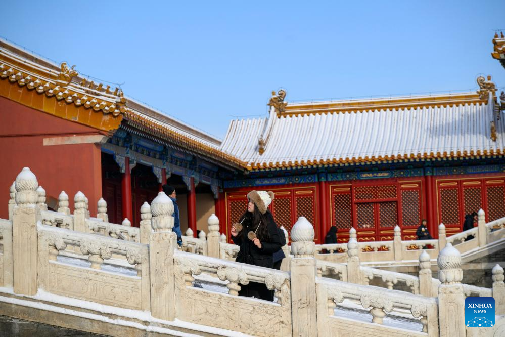 Tourists visit the Palace Museum after snowfall in Beijing, capital of China, Dec. 13, 2025. (Xinhua/Jin Liangkuai)
