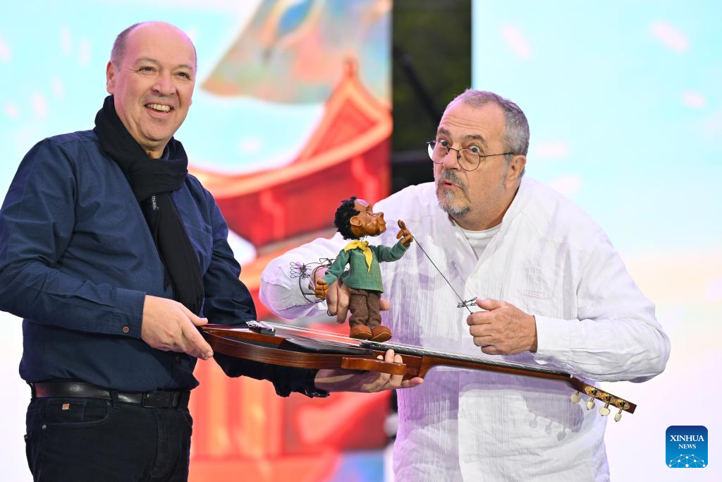 Foreign puppeteers perform during the Quanzhou International Puppet Festival in Quanzhou, southeast China's Fujian Province, Dec. 12, 2025. The puppet festival, which is part of the 2025 Maritime Silk Road International Cultural Tourism Festival, kicked off here Friday. Puppeteers home and abroad presented various puppet shows here, delivering a visual feast for the audience. [Photo/Xinhua]