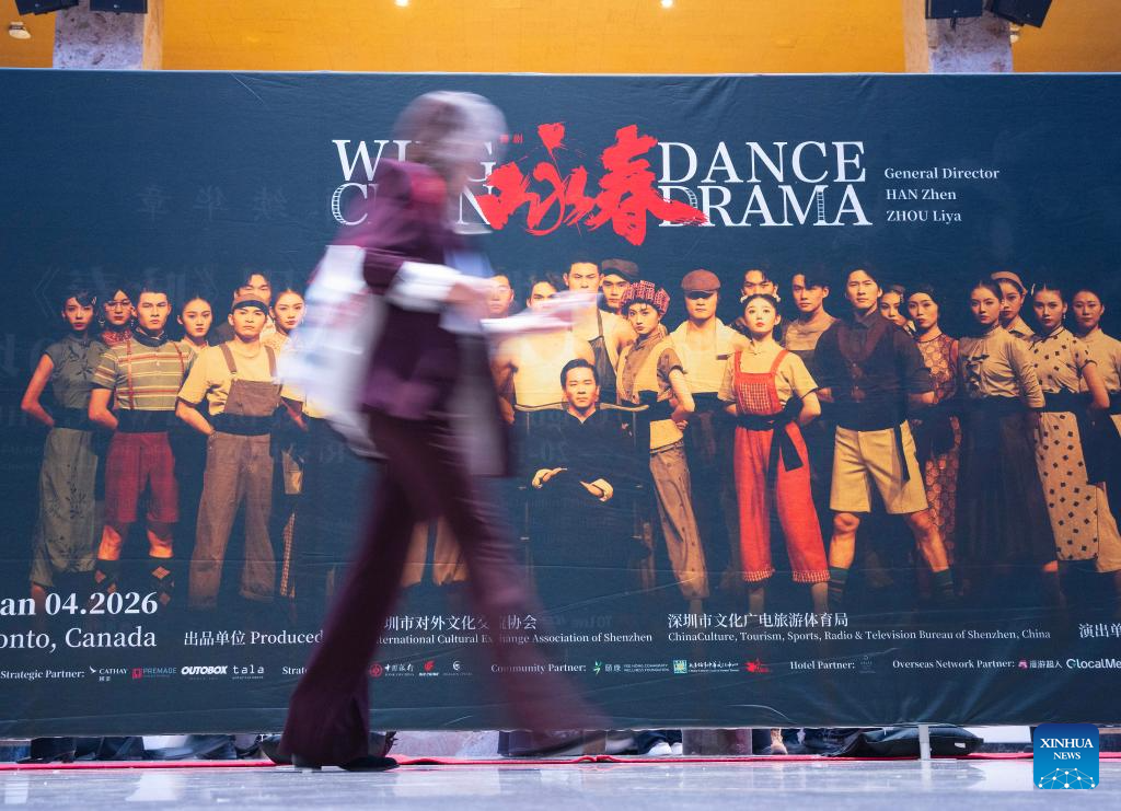 A woman walks past a large poster of the dance drama Wing Chun during a media day event in Toronto, Canada, on Dec. 15, 2025. [Photo/Xinhua]
