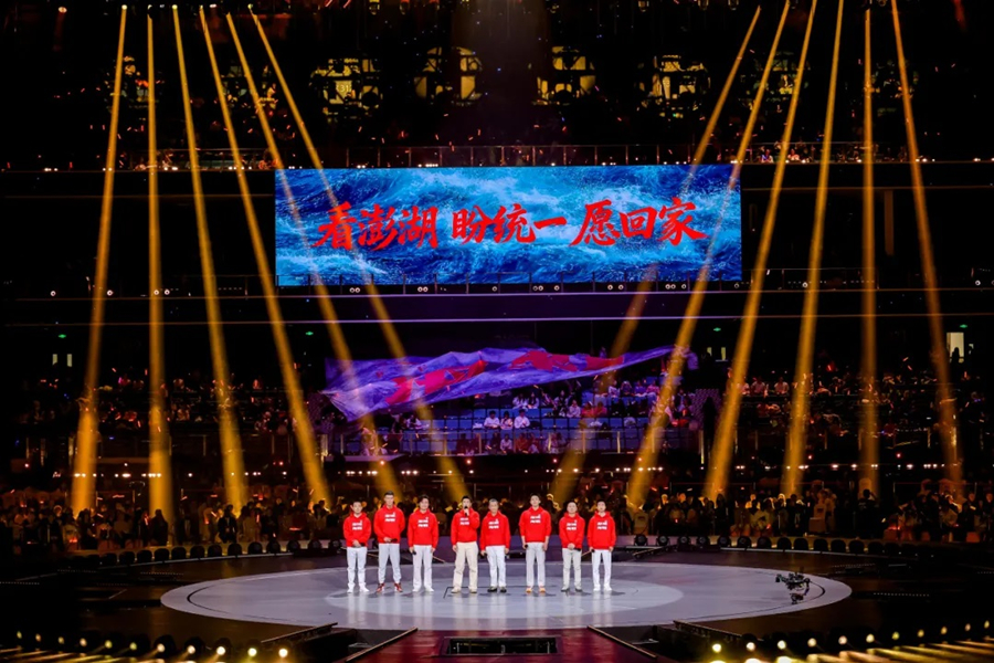 Actors introduce their new film "Peng Hu" during a gala marking the 120th anniversary of Chinese cinema in Chengdu, Sichuan province, Dec. 18, 2025. [Photo courtesy of China Movie Channel]