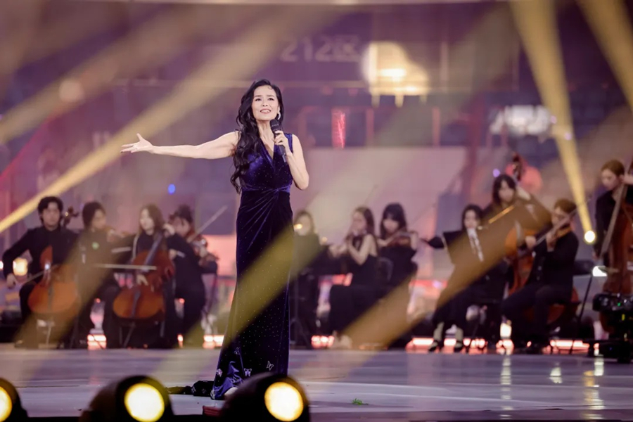 Singer Wei Wei performs during a gala to mark the 120th anniversary of Chinese cinema in Chengdu, Sichuan province, Dec. 18, 2025. [Photo courtesy of China Movie Channel]