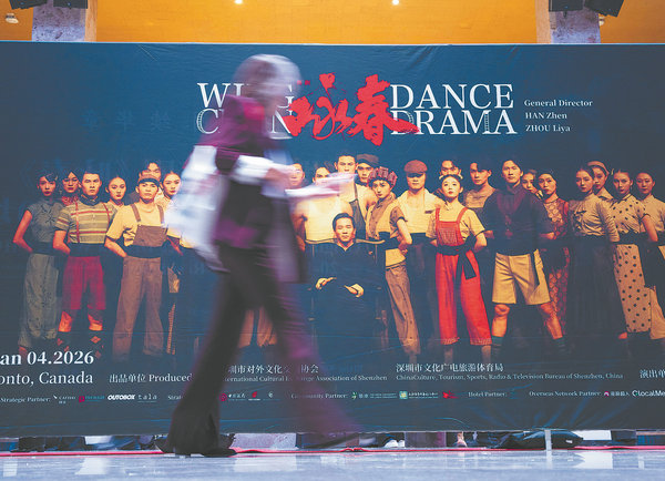 A woman passes a poster advertising the dance drama in the city. [Photo/Xinhua]