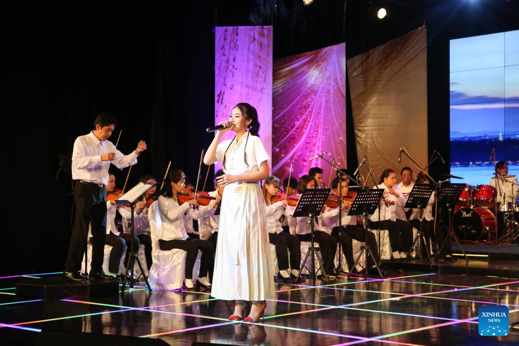 An artist sings during a classical poetry recitation and musical concert at Myanmar Radio and Television in Yangon, Myanmar, Dec. 24, 2025. [Photo/Xinhua]