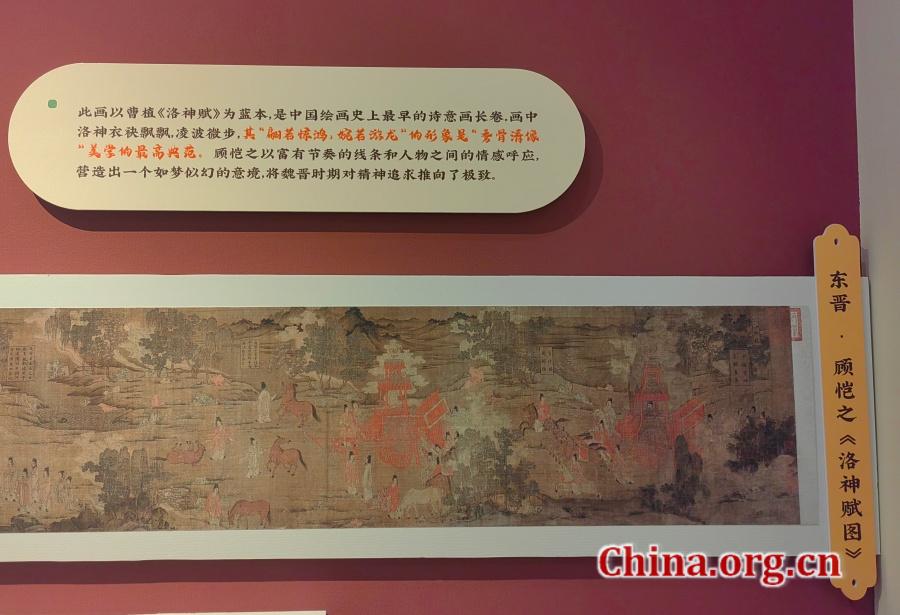 The "SHE: Female Images in Ancient Chinese Paintings" exhibition features female figures from paintings of the Wei, Jin, and Northern and Southern dynasties, exemplified by Gu Kaizhi's famous work "Nymph of the Luo River," at Yuyuantan Park in Beijing. The exhibition runs through March 2026. [Photo by Liu Sitong/China.org.cn]