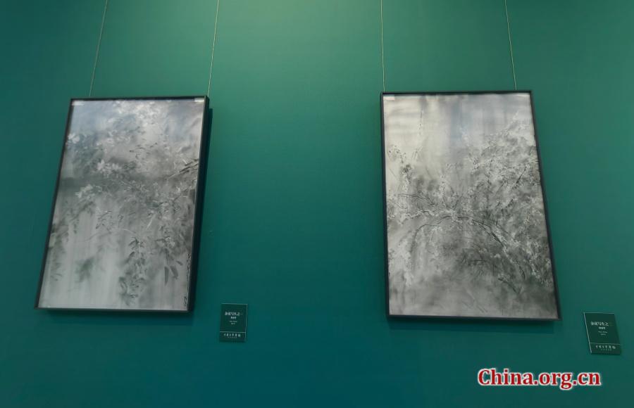 Sketches of flowers by He Duoling, 2023 and 2025, are displayed at an exhibition hosted by the China National Academy of Painting in Beijing, Dec. 29, 2025. [Photo by Liu Sitong/China.org.cn]