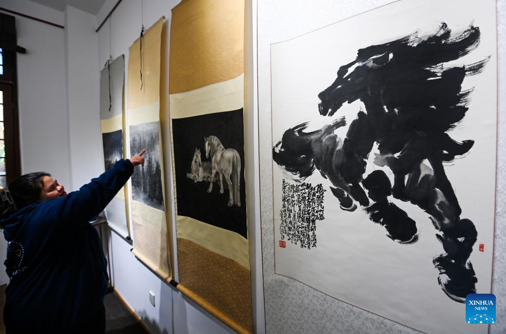 Visitors view horse paintings at an exhibition in north China's Tianjin, Dec. 29, 2025. Various activities are held across China to celebrate the upcoming new year. (Xinhua/Zhao Zishuo)