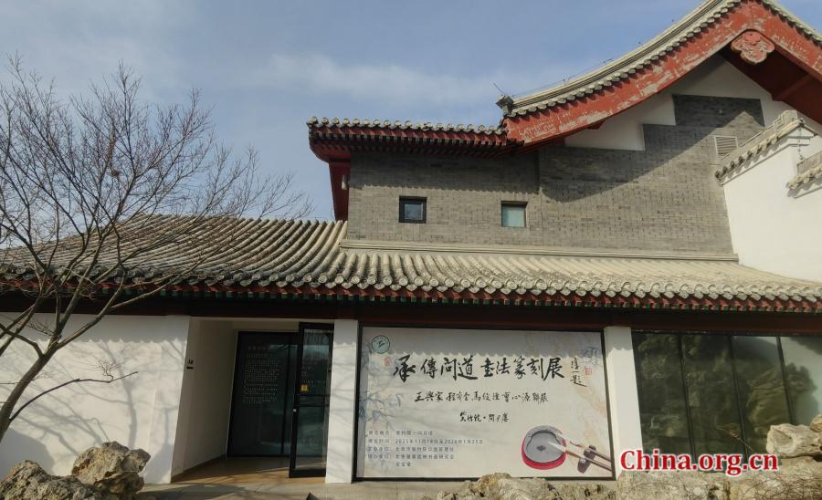 The entrance to a calligraphy and seal carving exhibition at Zizhuyuan Park in Beijing, Dec. 26, 2025. [Photo by Liu Sitong/China.org.cn]