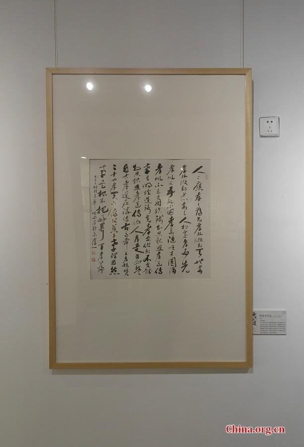 A calligraphic work by Cheng Maoquan on filial piety is displayed at Zizhuyuan Park in Beijing, Dec. 26, 2025. [Photo by Liu Sitong/China.org.cn]