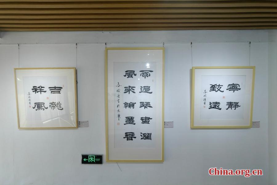 Calligraphic works by Ma Juntong are displayed at Zizhuyuan Park in Beijing, Dec. 26, 2025. [Photo by Liu Sitong/China.org.cn]