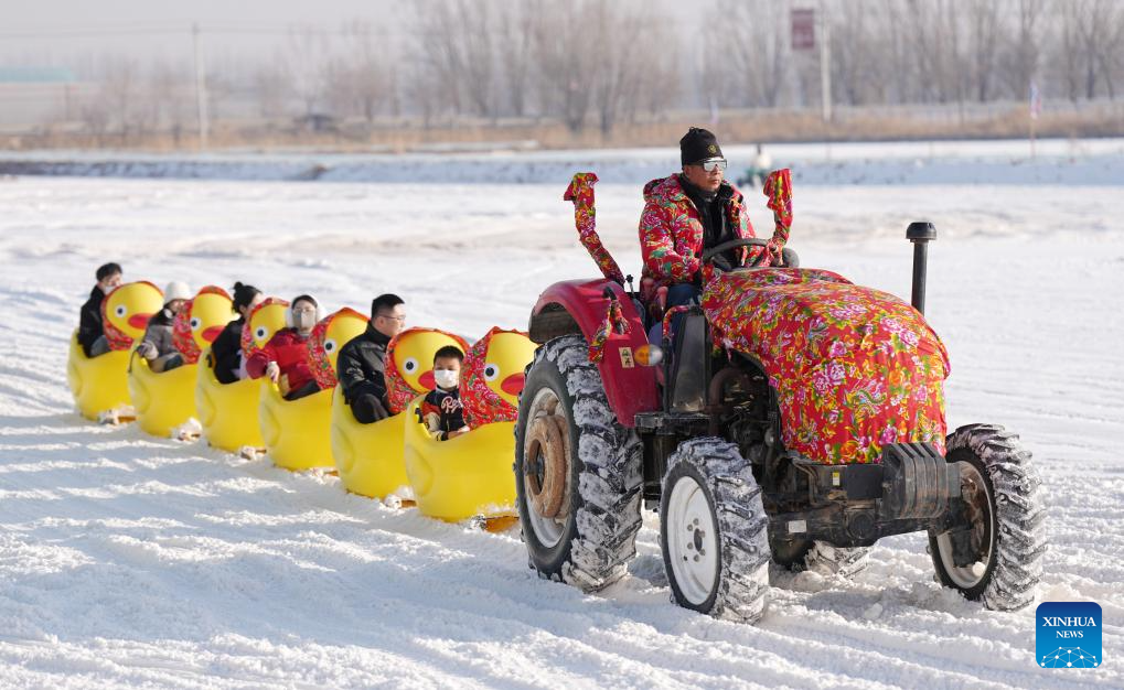 Tourists enjoy a cartoon sled ride at an ice and snow amusement park in Yinchuan, northwest China's Ningxia Hui Autonomous Region, Jan. 3, 2026. People engaged in various leisure activities during the New Year's Day holiday. (Xinhua/Wang Peng)