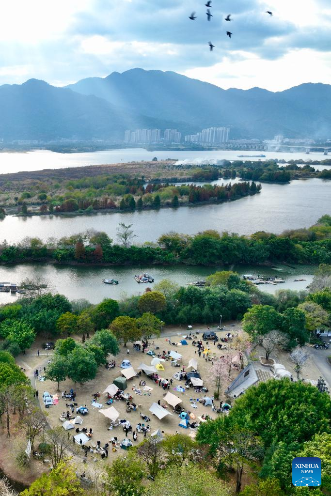 An aerial drone photo taken on Jan. 2, 2026 shows tourists enjoying their leisure time at a park in Fuzhou, southeast China's Fujian Province. (Xinhua/Jiang Kehong)