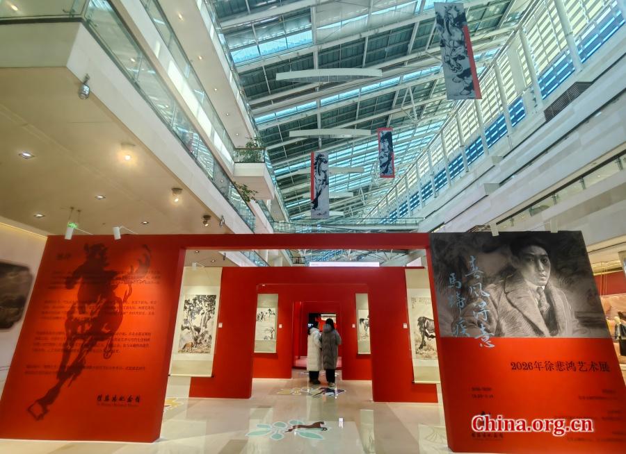 The Xu Beihong Memorial Museum presents an exhibition of Xu's horse paintings and other works at Financial Street Shopping Center in Beijing to mark the Year of the Horse, Jan. 5, 2026. [Photo by Liu Sitong/China.org.cn]
