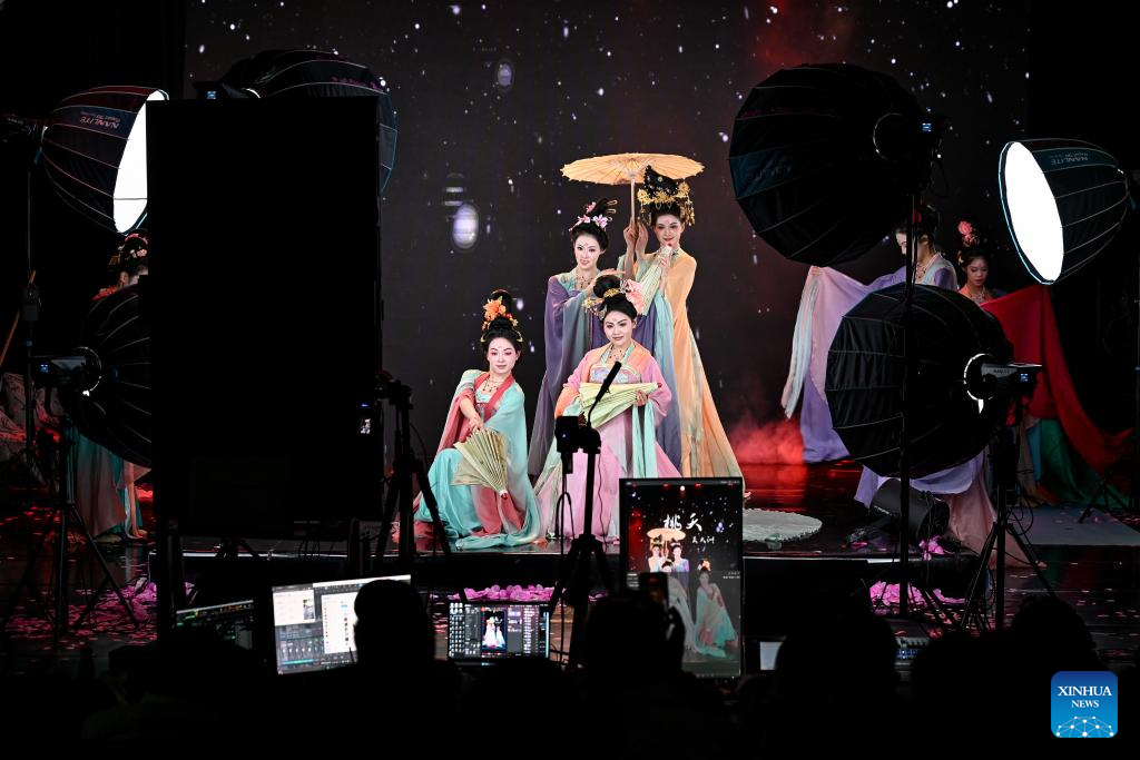 Actresses perform during a livestream in Xi'an, northwest China's Shaanxi province, Dec. 25, 2025. [Photo/Xinhua]