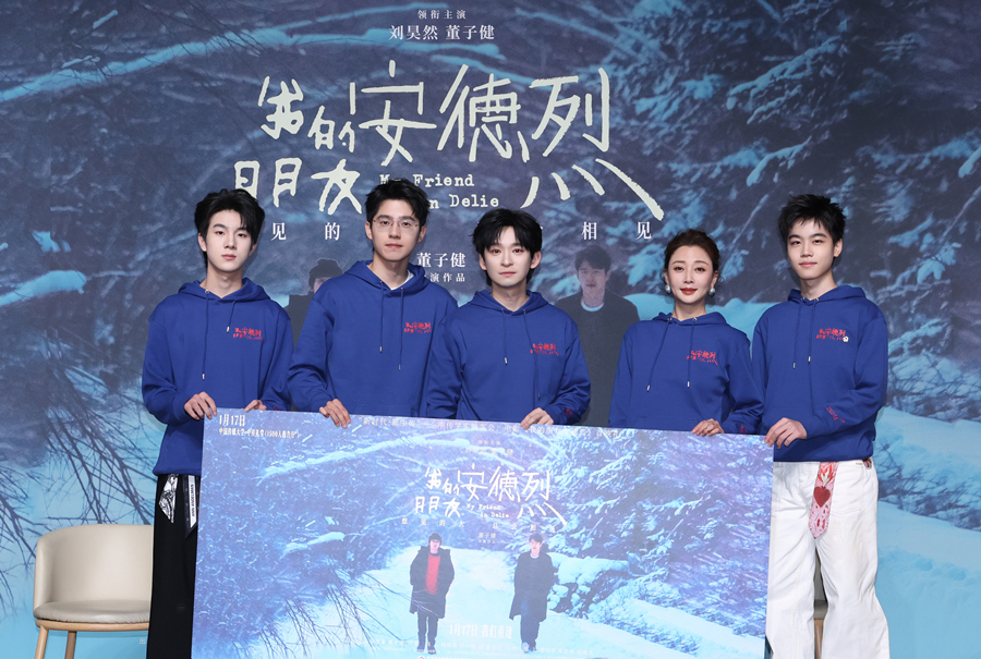 The cast and crew of "My Friend An Delie" pose for a photo at the film's premiere in Beijing, Jan. 17, 2026. [Photo courtesy of NumeroUs Movie]