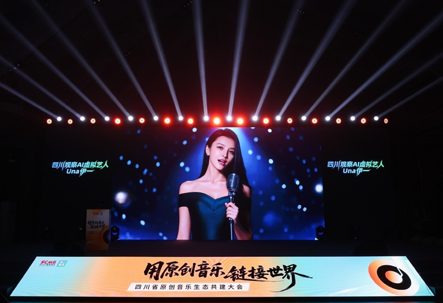 AI virtual artist "Una" is unveiled at the Sichuan Original Music Ecology Co-creation Conference in Beijing, Jan. 17, 2026. [Photo courtesy of Music Business]