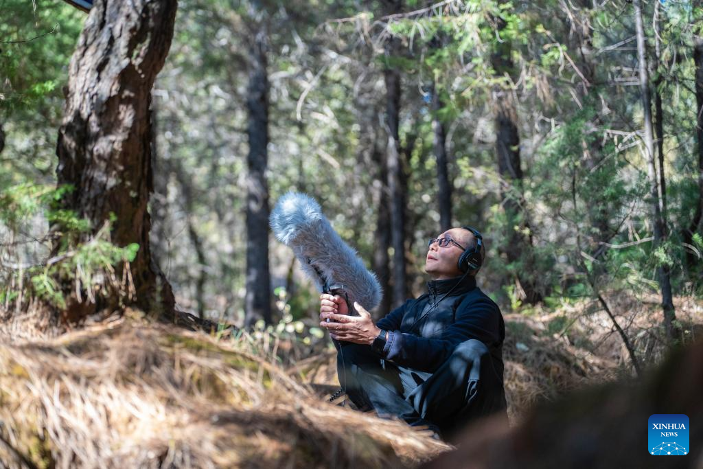 He Dehua collects sounds of birds at a park at the ancient city of Lijiang, southwest China's Yunnan Province, Jan. 16, 2026. He Dehua, 51, and his wife refurbished an old house of theirs in October 2025, and turned it into a music club called "Wayfarers," where they can share their personal stories with travelers and long-lost friends.