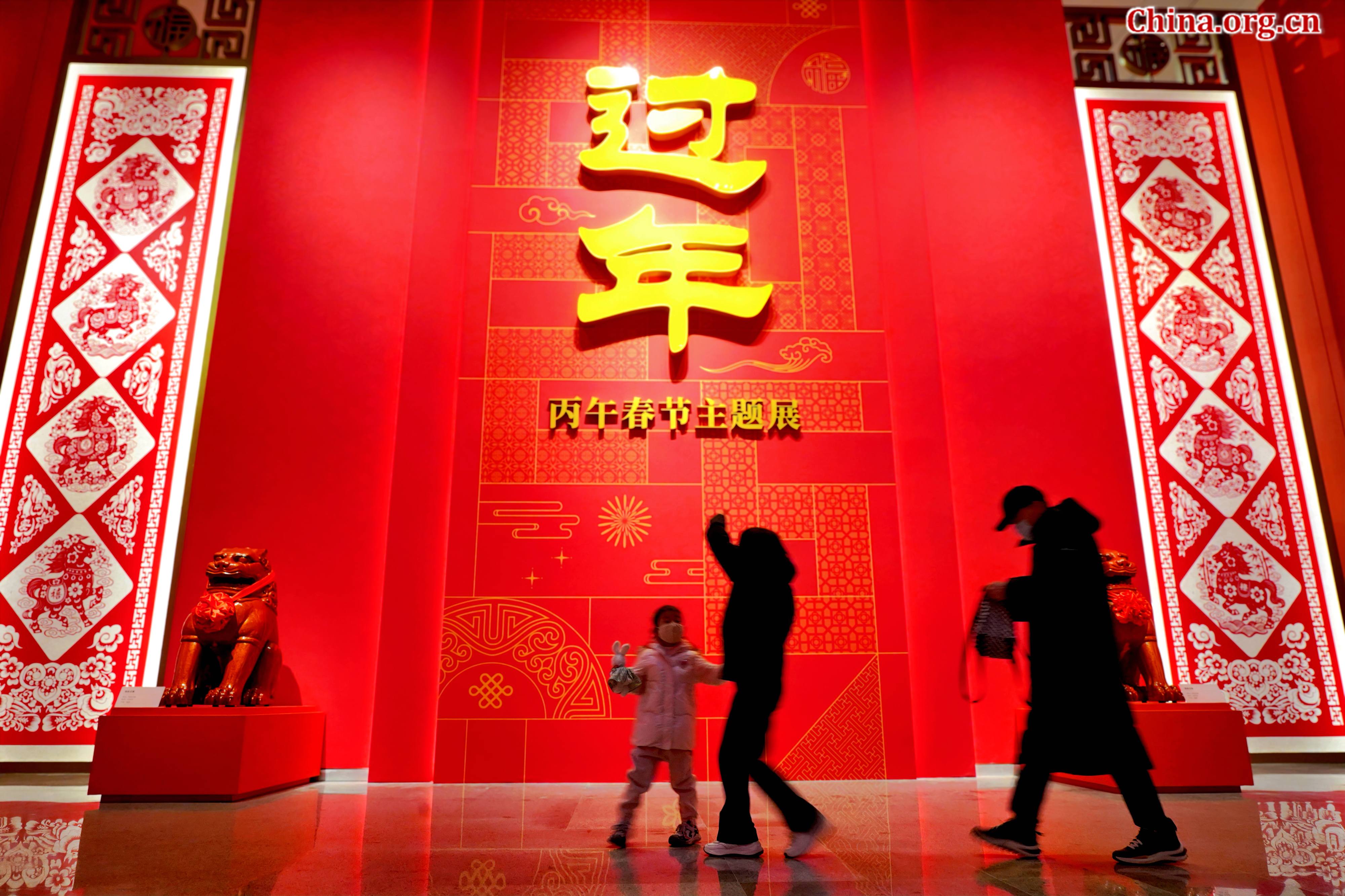 Visitors walk past an exhibition installation showcasing Spring Festival traditions at the Chinese Traditional Culture Museum in Beijing, Jan. 21, 2026. [Photo by Wang Yiming/China.org.cn]