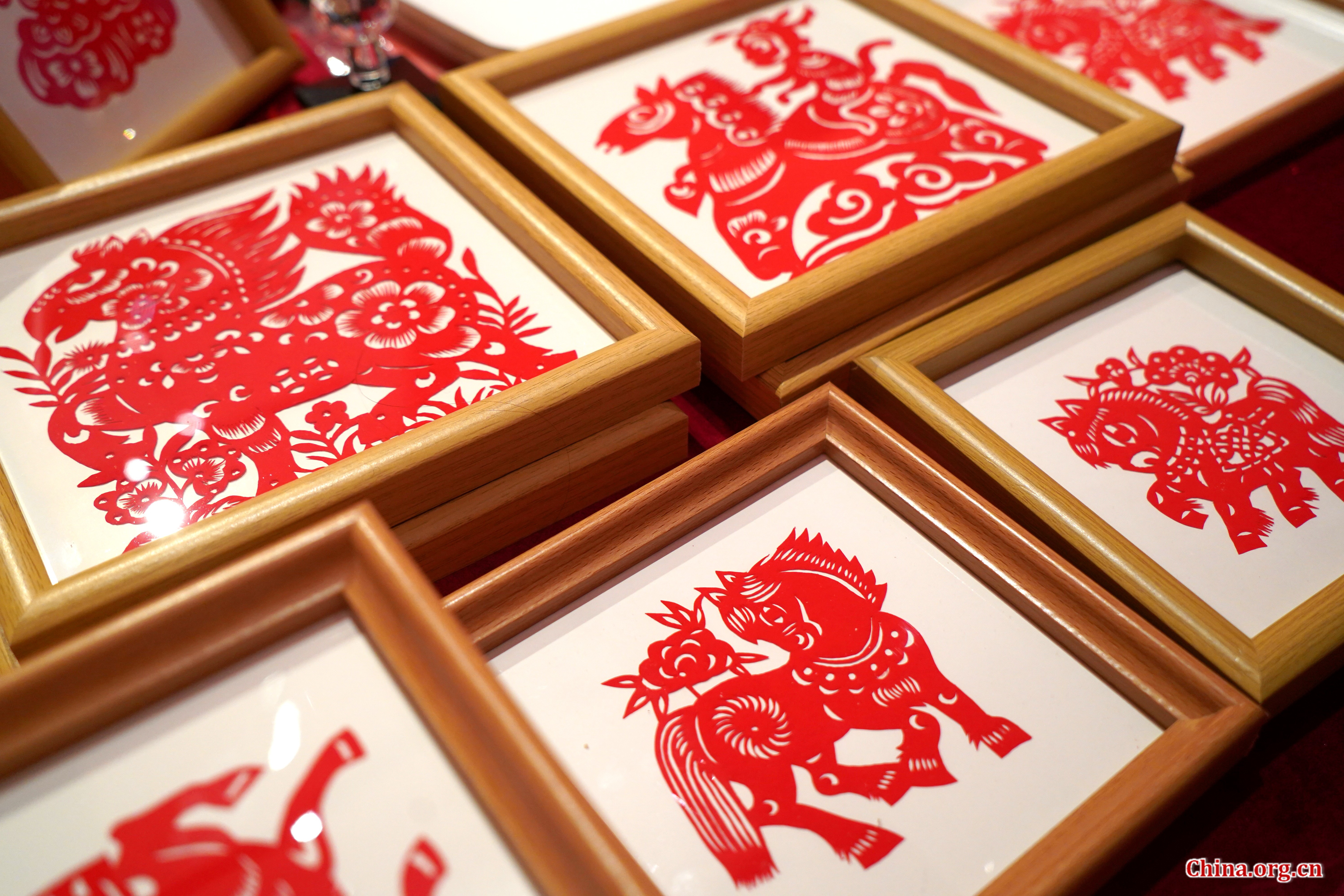 Framed paper-cutting artworks featuring horse designs on display at the Chinese Traditional Culture Museum in Beijing, Jan. 21, 2026. [Photo by Wang Yiming/China.org.cn]
