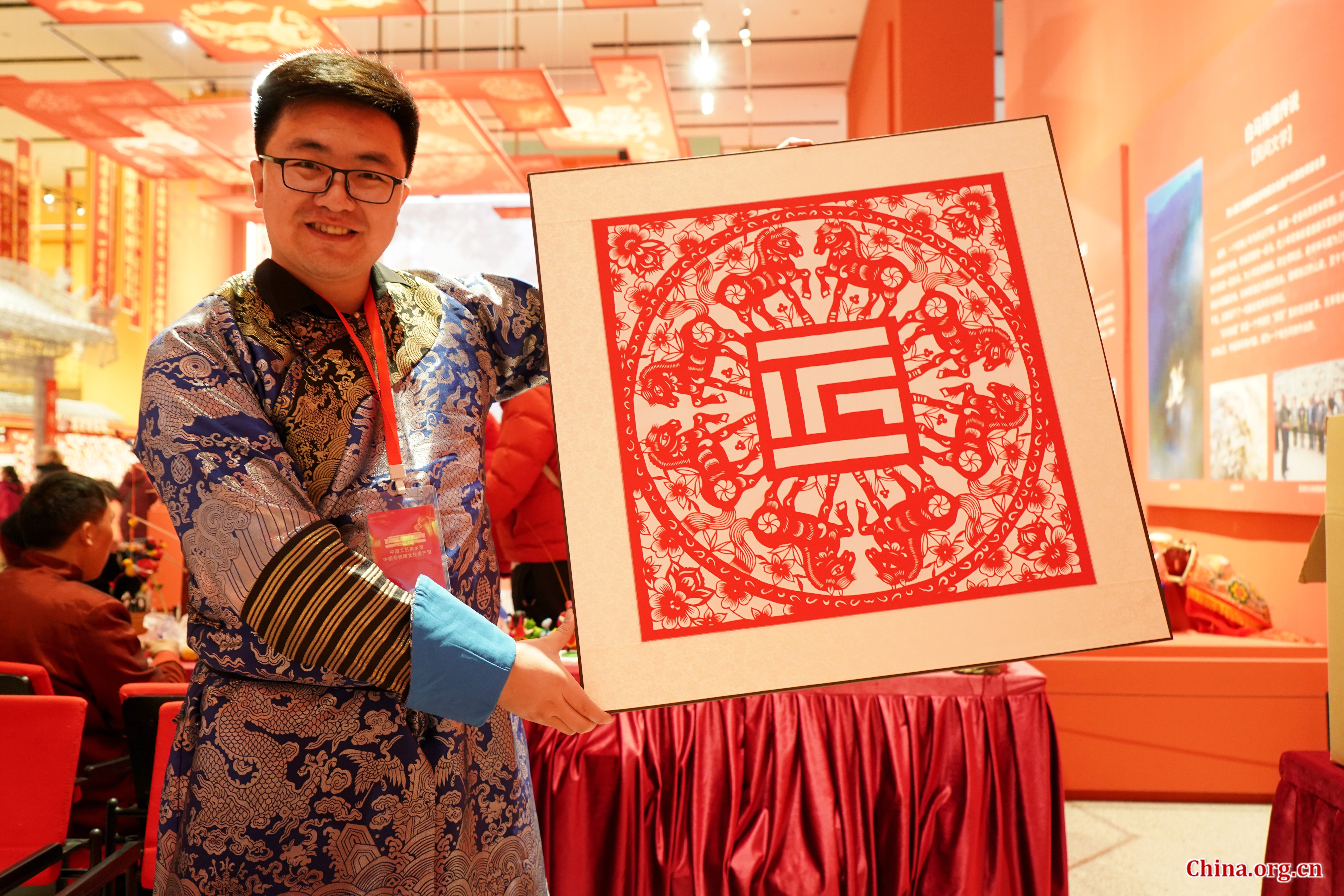 Zhao Congzhuo, 12th-generation inheritor of the Manchu Irgen Gioro paper-cutting craft, presents a horse-themed paper-cutting at the Chinese Traditional Culture Museum in Beijing, Jan. 21, 2026. [Photo by Wang Yiming/China.org.cn]