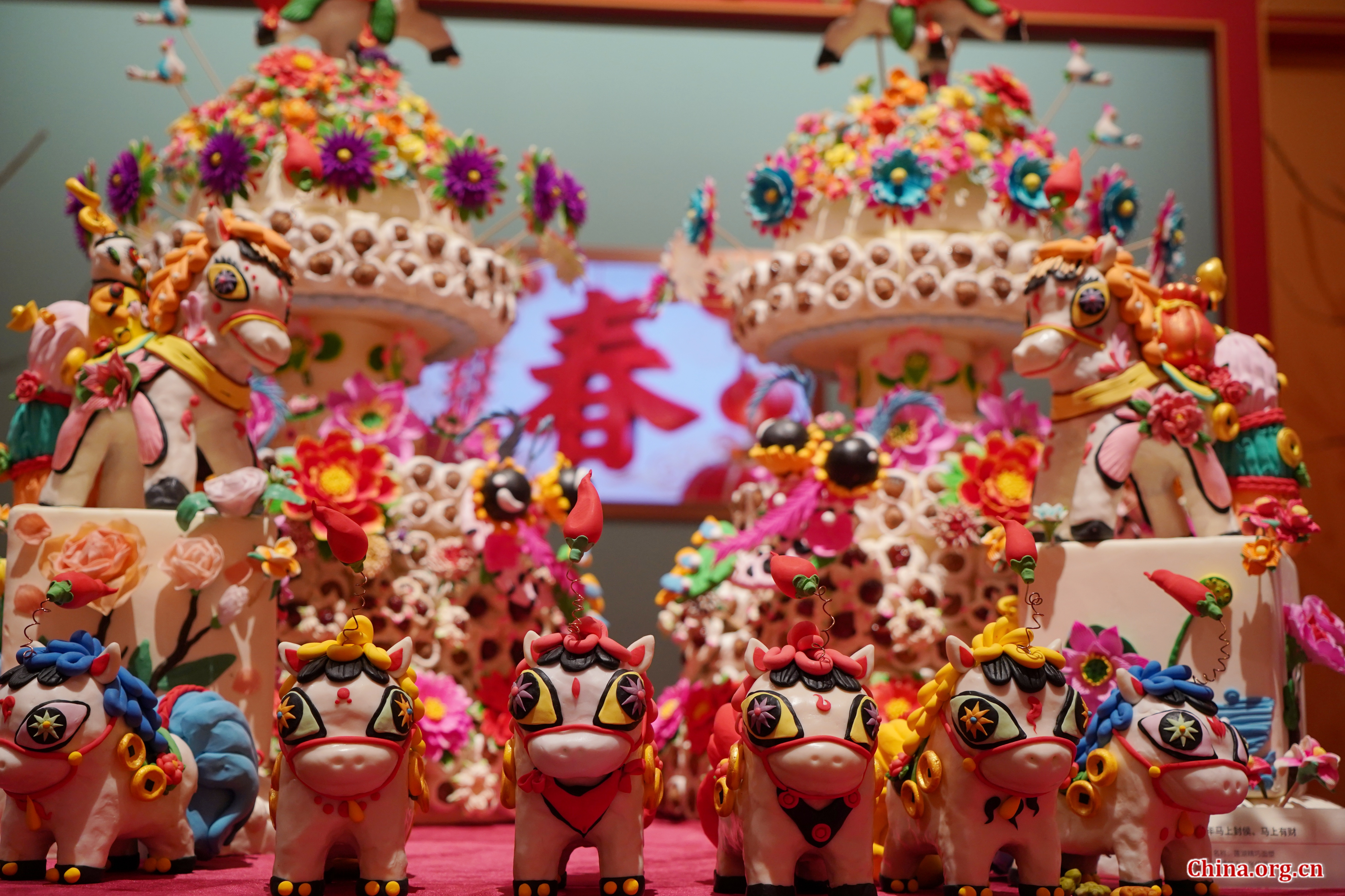 Dough horse figurines on display at the Chinese Traditional Culture Museum in Beijing, Jan. 21, 2026. [Photo by Wang Yiming/China.org.cn]