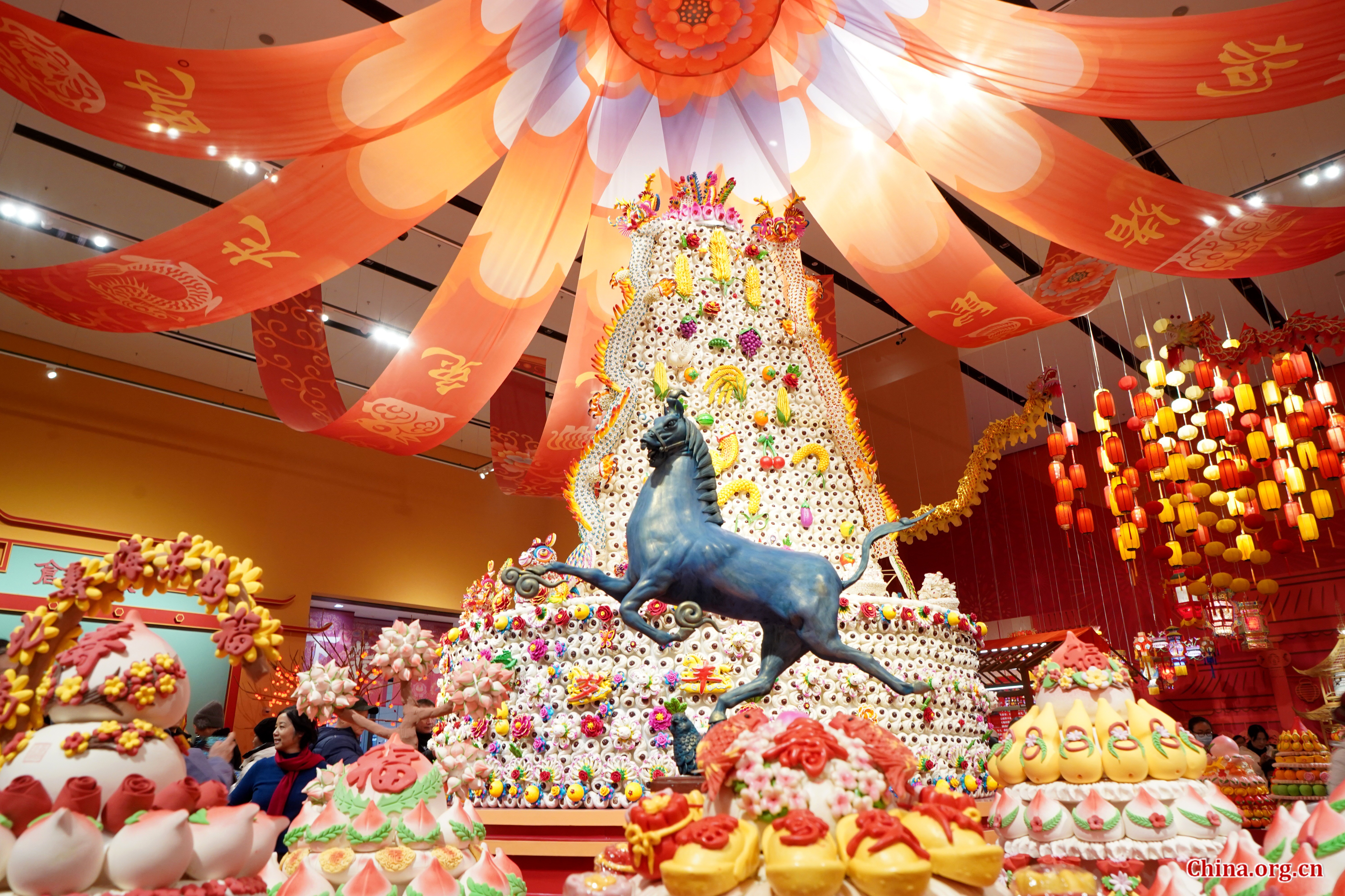 Dough figurine artworks, a form of Chinese intangible cultural heritage, on display at the Chinese Traditional Culture Museum in Beijing, Jan. 21, 2026. [Photo by Wang Yiming/China.org.cn]
