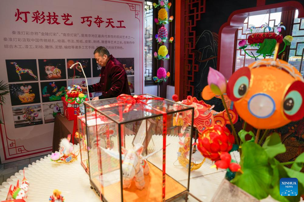 Lu Min makes preparations at his booth during the 40th Qinhuai Lantern Festival at the Bailuzhou Park in Nanjing, east China's Jiangsu Province, Jan. 21, 2026. [Photo/Xinhua]