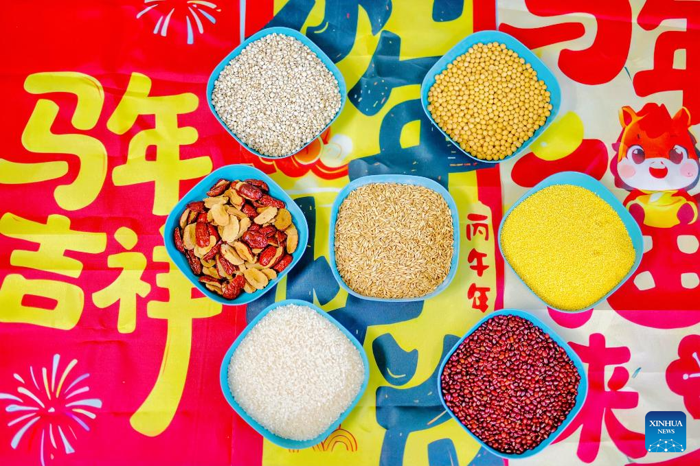 This photo taken on Jan. 26, 2026 shows the ingredients for making Laba porridge at a kindergarten in Tianjin, north China. The Laba Festival, which is celebrated each year on the eighth day of the twelfth lunar month with the custom of having Laba porridge, falls on Monday this year. [Photo/Xinhua]